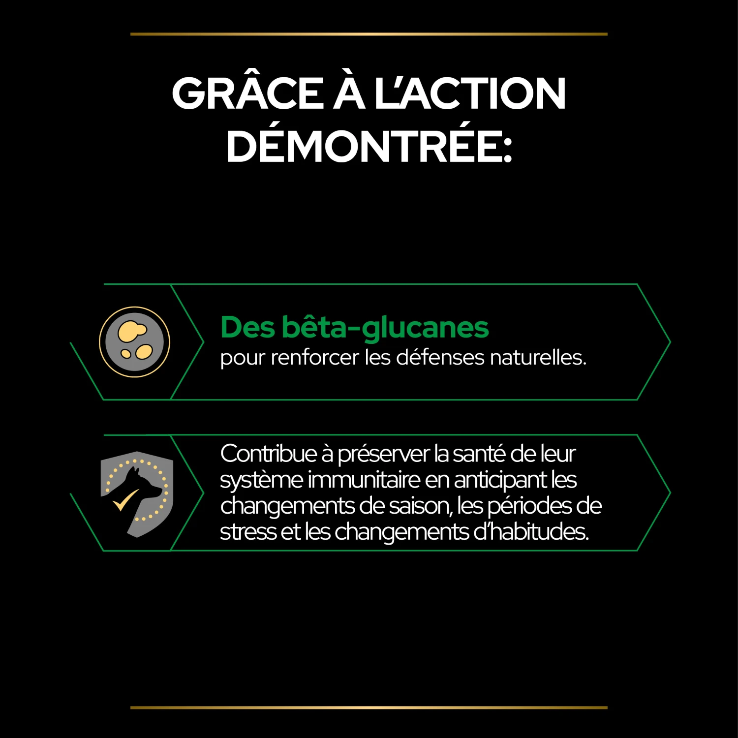 PRO PLAN® a mis au point une gamme d’aliments complĂ©mentaires ciblĂ©s destinĂ©s Ă agir sur la mobilitĂ©, l’immunitĂ©, la vitalitĂ©, la digestion, la peau & le pelage et le bien-ĂŞtre. PRO PLAN® Natural Defenses+ protège votre chien de l’intĂ©rieur, grâce Ă des extraits de levure (source de bĂŞta-glucanes). Sa formule est scientifiquement conçue pour : – Soutenir le système immunitaire – Aider la production naturelle d’anticorps