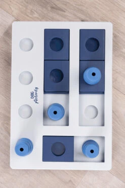 Avec ce jeu de plateau stimulant, vous mettez votre chien au défi de repousser sans cesse ses limites et d’être de plus en plus inventif pour obtenir la récompense.