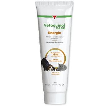 Energie de VĂ©toquinol Care est un gel riche en calories et en vitamines et a un goĂ»t de poissonirrĂ©sistible. Ce gel a une excellente assimilation, mĂŞme en cas de perte d’appĂ©tit.
